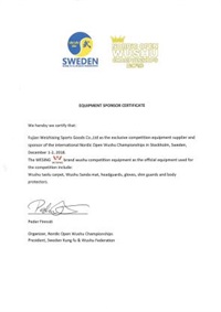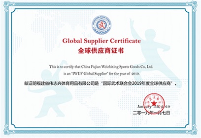 國際武術(shù)聯(lián)合會(huì)全球供應(yīng)商認(rèn)證書 |